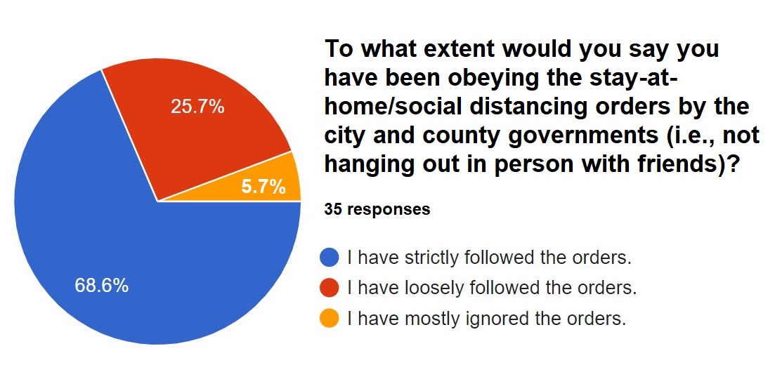 “Most of my friends are hanging out with a lot of people,” she explained. “One of them is going out every single night, hanging out with different people.” Rust feels that she has been cautious, but not super strict about social distancing.